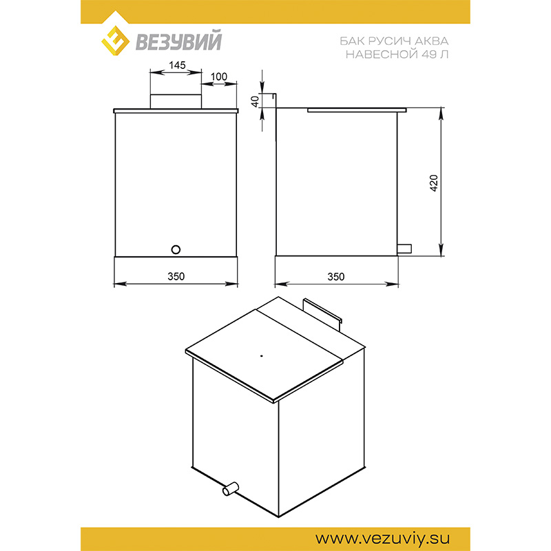 Бак навесной 49 л (AISI 439) Русичъ "Аква" 16 (ДТ-4)