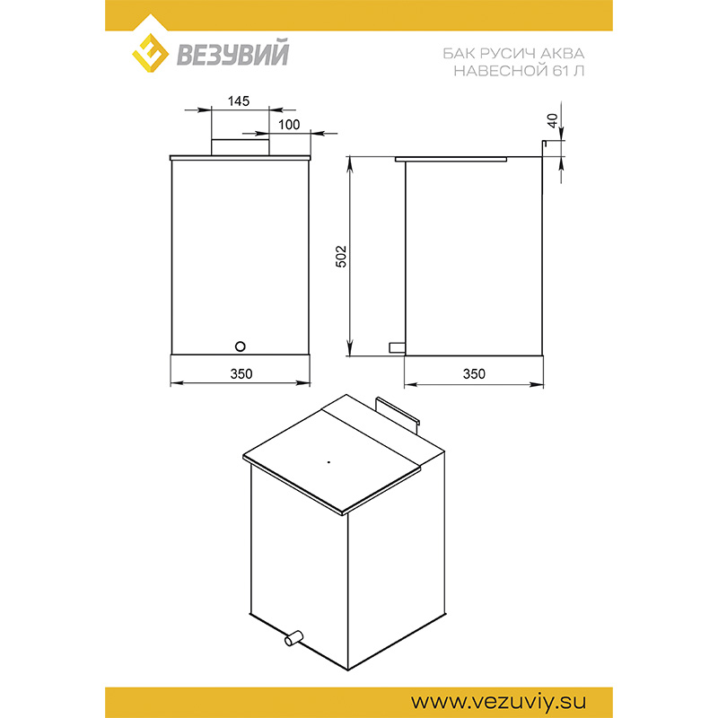 Бак навесной 61 л (AISI 439) Русичъ "Аква" 22 (ДТ-4)