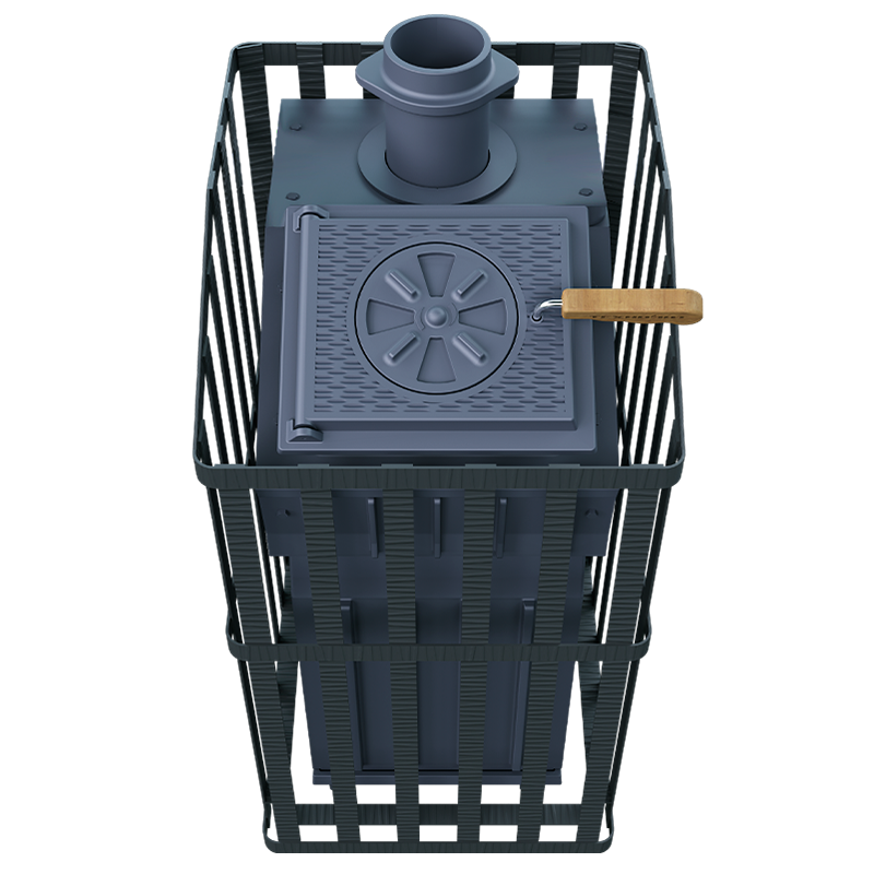 Печь легко модернизируется до полноценной печи предназначенной для Русской бани путем замены стальной сетки на каменную облицовку без демонтажа дымохода.