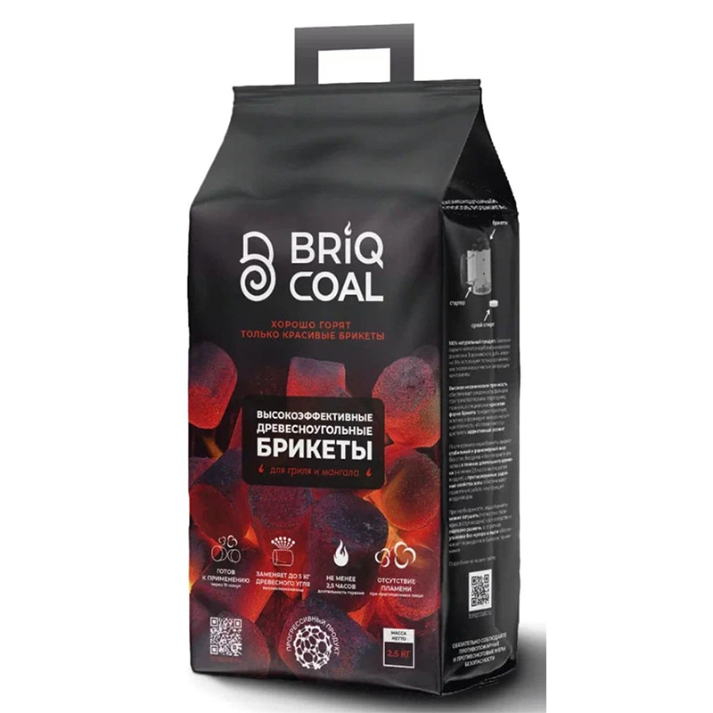 Древесноугольные брикеты BriqCoаl 2,5 кг