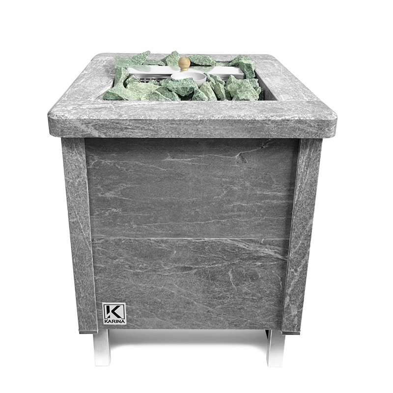 Электрическая печь KARINA Quadro 12 Талькохлорит – это электрокаменка, облицованная натуральным камнем со всех сторон, и обладающая мощностью оптимальной для семейных саун и средних бань объемом до 16 м3.