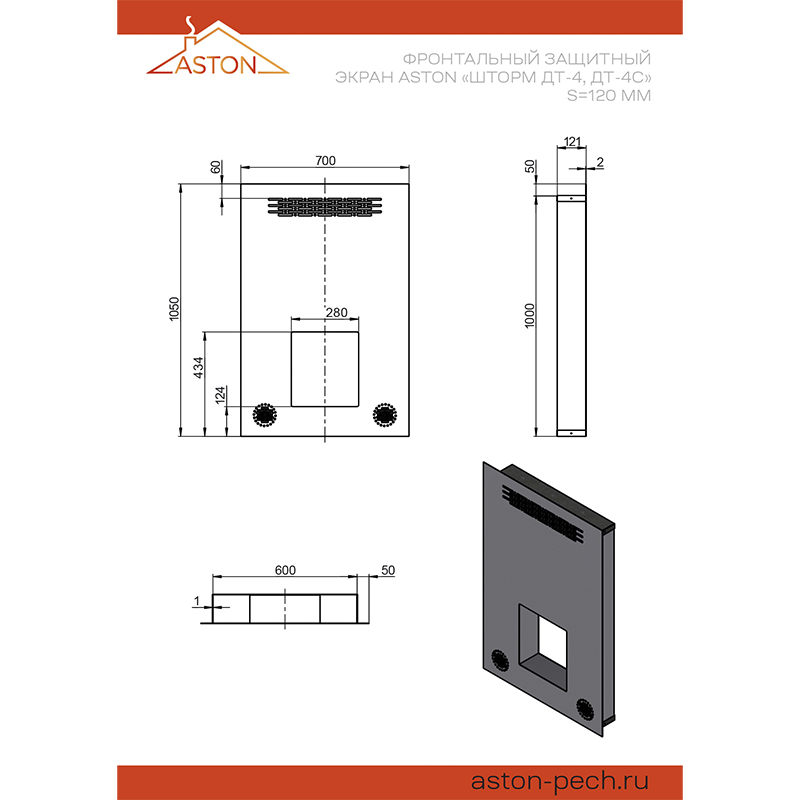Фронтальный защитный экран ASTON «Шторм ДТ-4, ДТ-4С» S=120мм