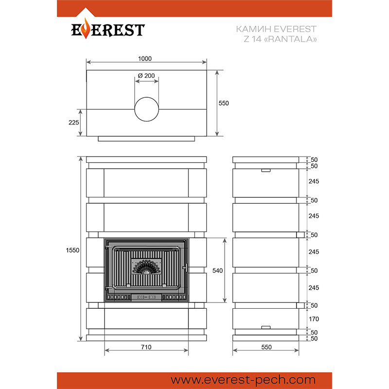 Камин EVEREST Z14 "РАНТАЛА" Н-1550 Талькохлорит / Пироксенит