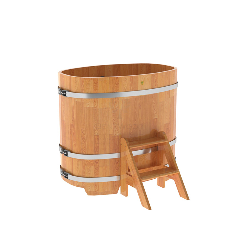 Купель выполнена из натурального дерева в полимерном покрытии. В купели предусмотрены сиденья для одного человека. В купели предусмотрено сливное и переливное отверстия. Купели изготовлены из деревянных шпунтованных клёпок, склеенных между собой водостойким клеем и стянуты хобручами из нержавеющей стали. Внутри и снаружи купель покрыта экологически безвредным полимерным покрытием, обладающим эластичностью, высокой ударопрочностью и износостойкостью. Данное покрытие обеспечивает высокую степень защиты древесины от воздействия воды и сохраняет свои свойства при температурах от –20°С до +80°С, что позволяет пользоваться купелью многие годы (не менее 10 лет). При соблюдении условий эксплуатации после затвердевания покрытие является абсолютно безопасным и может использоваться даже в контакте с пищевыми продуктами.
