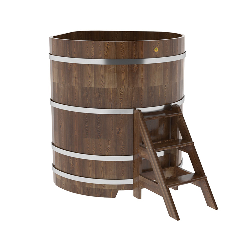 Купель выполнена из натурального дерева в полимерном покрытии. В купели предусмотрены сиденья для одного человека. В купели предусмотрено сливное и переливное отверстия. Купели изготовлены из деревянных шпунтованных клёпок, склеенных между собой водостойким клеем и стянуты хобручами из нержавеющей стали. Внутри и снаружи купель покрыта экологически безвредным полимерным покрытием, обладающим эластичностью, высокой ударопрочностью и износостойкостью. Данное покрытие обеспечивает высокую степень защиты древесины от воздействия воды и сохраняет свои свойства при температурах от –20°С до +80°С, что позволяет пользоваться купелью многие годы (не менее 10 лет). При соблюдении условий эксплуатации после затвердевания покрытие является абсолютно безопасным и может использоваться даже в контакте с пищевыми продуктами.