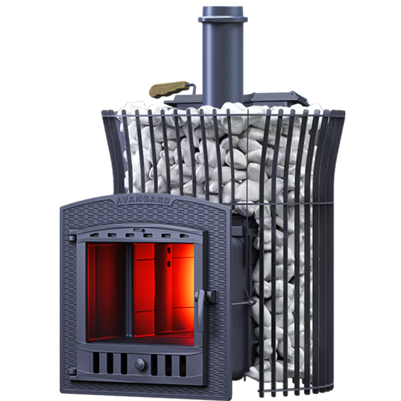 Печь чугунная для бани AVANGARD ЗК 25 (П2) Ураган в сетке Тюльпан