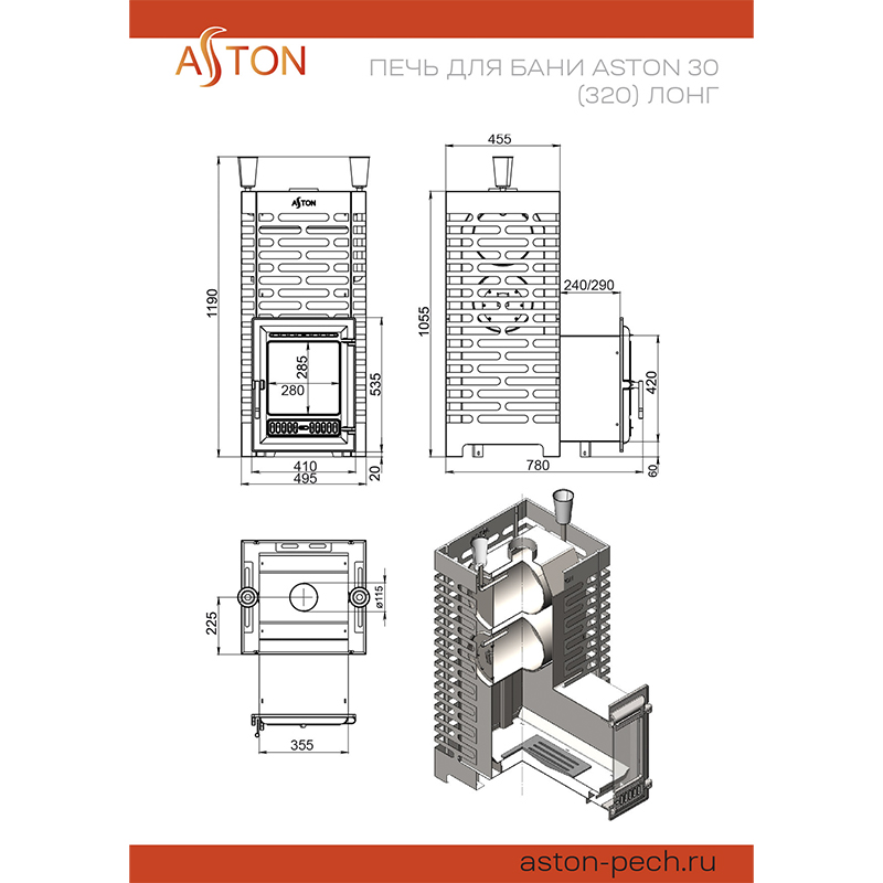 Печь для бани ASTON 30 НЕРЖ. (320) Лонг
