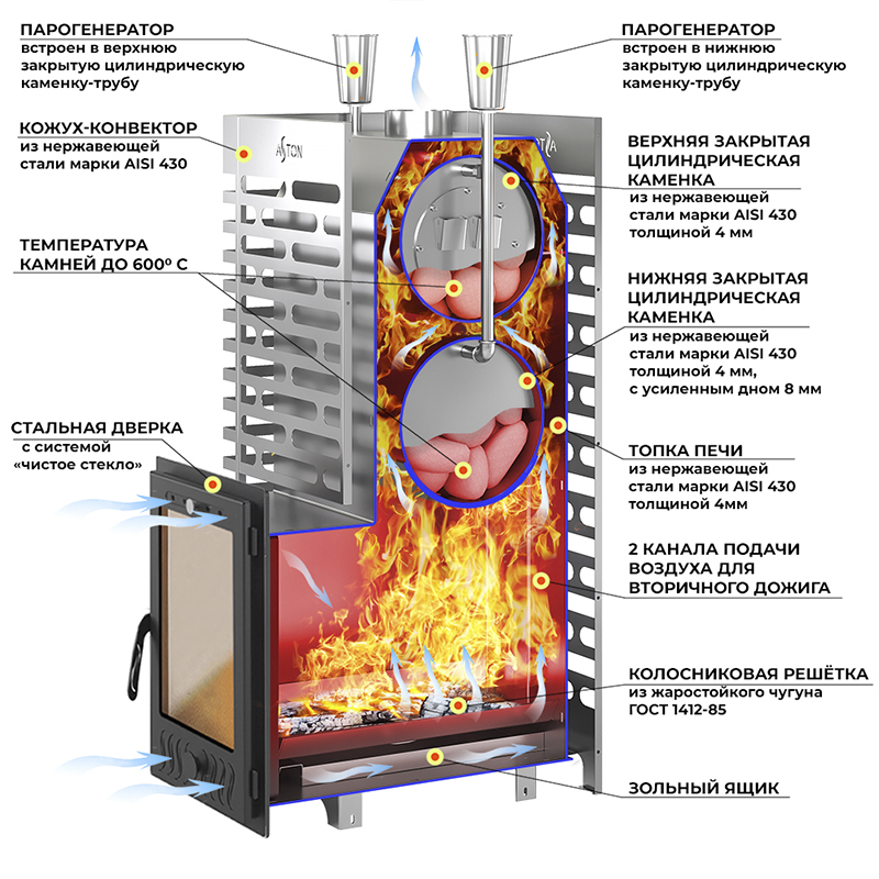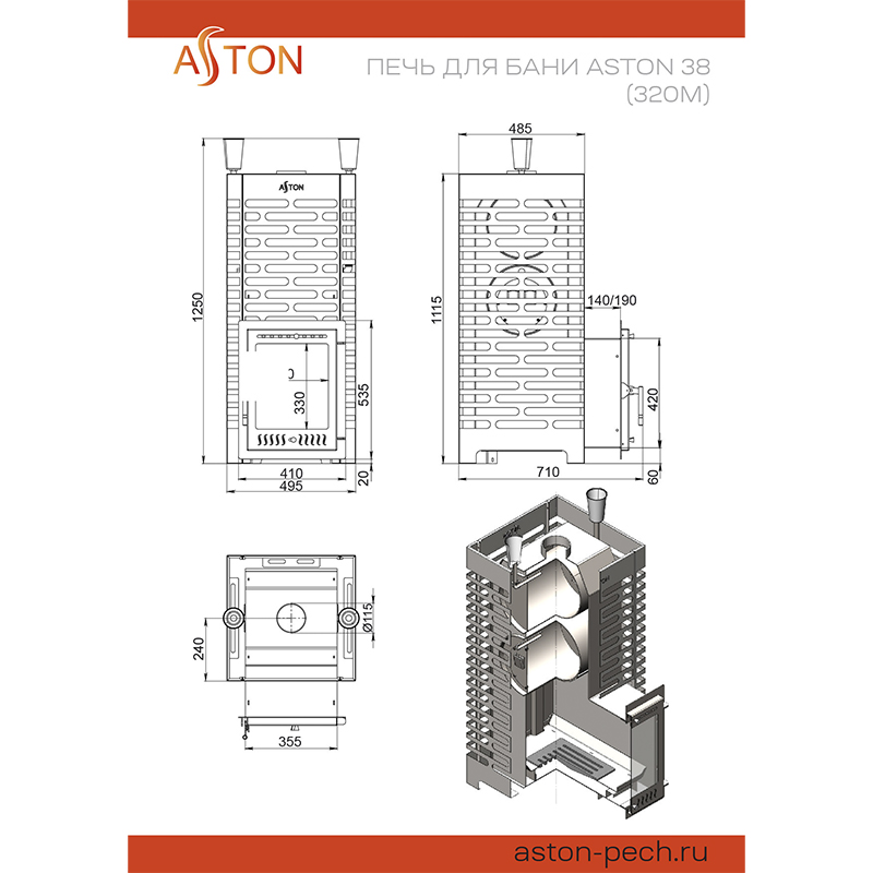 Печь для бани ASTON 38 НЕРЖ. (320М)