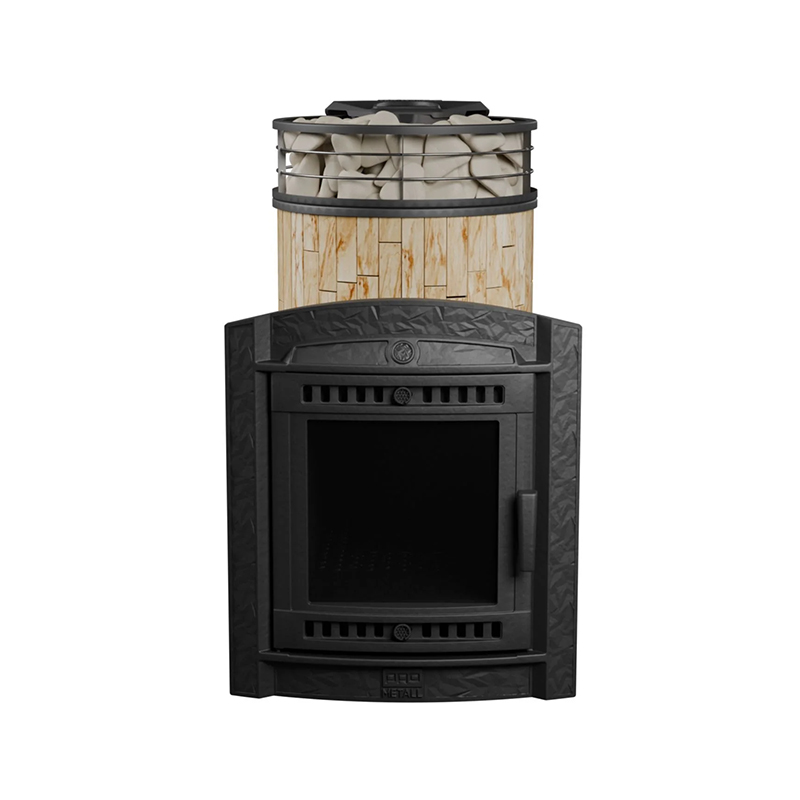 Печь для бани чугунная "Атмосфера L" Окаменевшее дерево ламель+сетка С ТОННЕЛЕМ