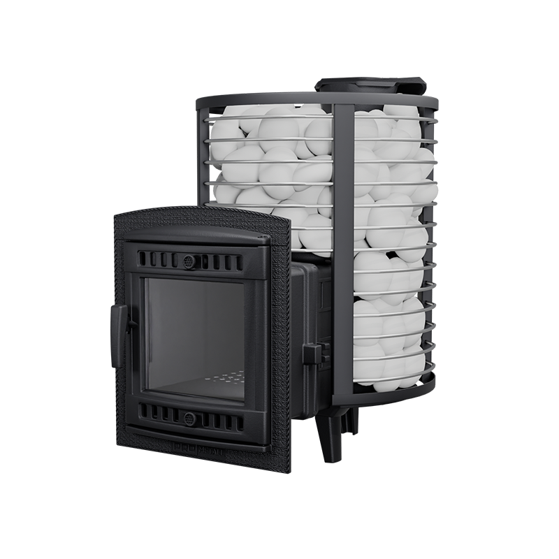 Ультра компактная модель банной печи. Кожух печи изготовлен в виде сетки из нержавеющей стали и полностью заполняется природными камнями, обеспечивая высокую динамику нагрева парильного помещения.