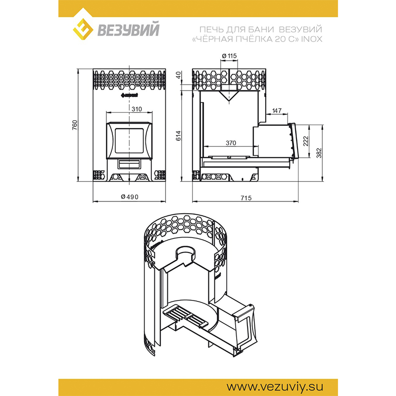 - Диаметр дымохода (мм) Ø 115