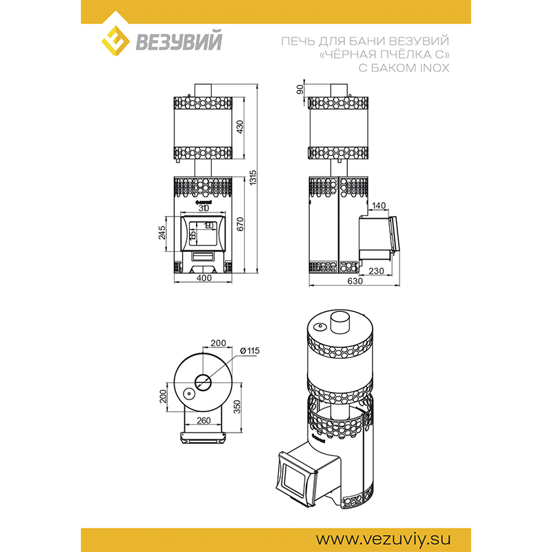 - Диаметр дымохода (мм) Ø 115