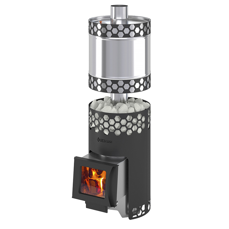 Печь для бани "Чёрная Пчёлка С" НЕРЖ. с баком (стекло)
