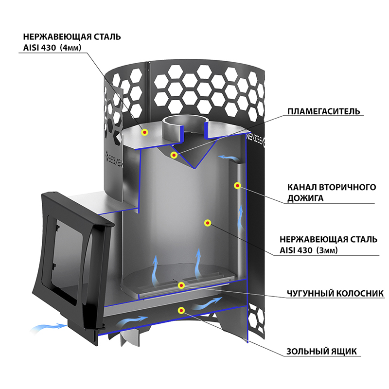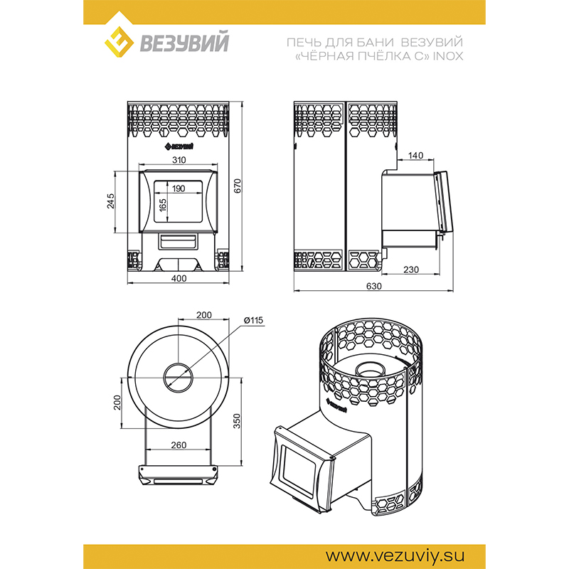 Печь для бани "Чёрная Пчёлка С" НЕРЖ. (стекло)