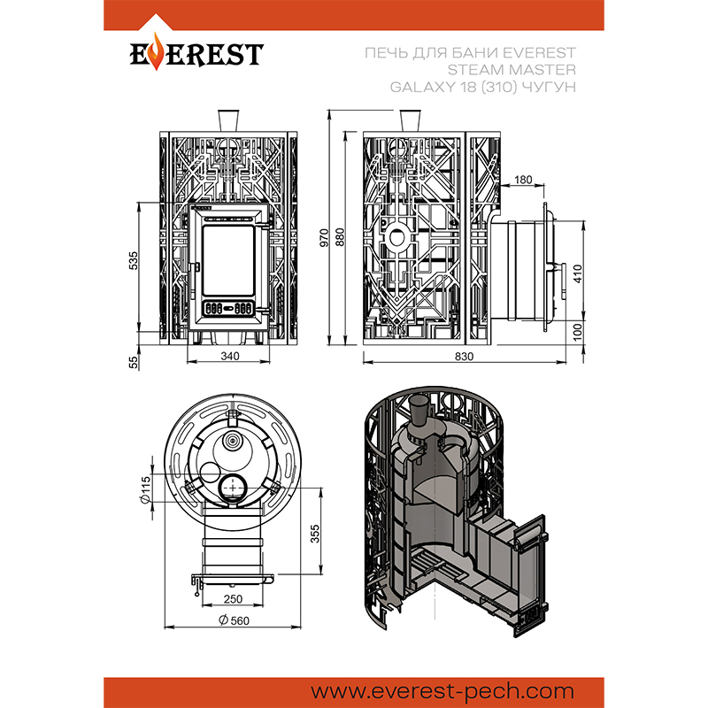 Печь для бани Эверест "Steam Master" 18 "ГЭЛЭКСИ" (310) ЧУГУН