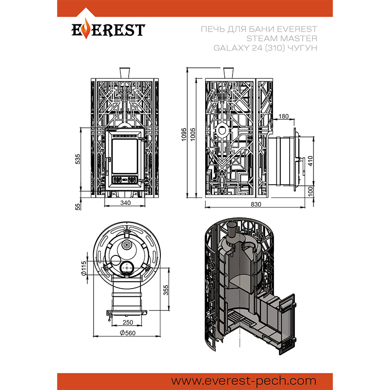 Печь для бани Эверест "Steam Master" 24 "ГЭЛЭКСИ" (310) ЧУГУН