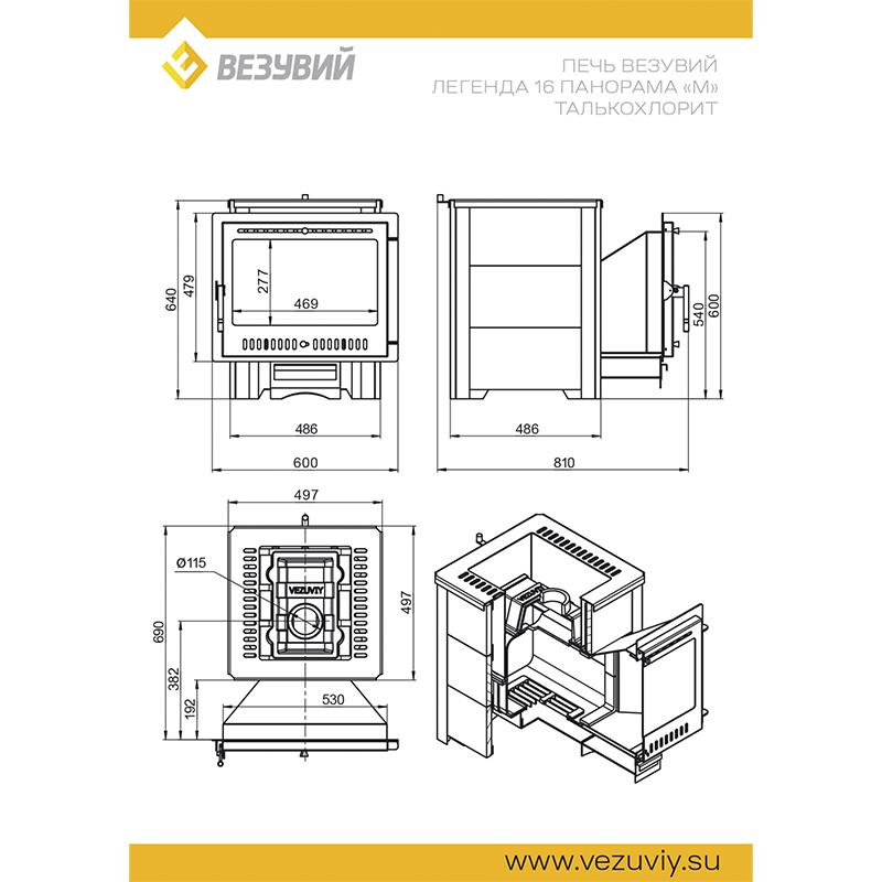- Диаметр дымохода (мм) Ø 115
