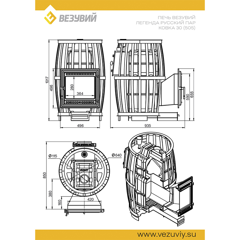 Печь для бани Легенда Русский пар Ковка 30 (505)