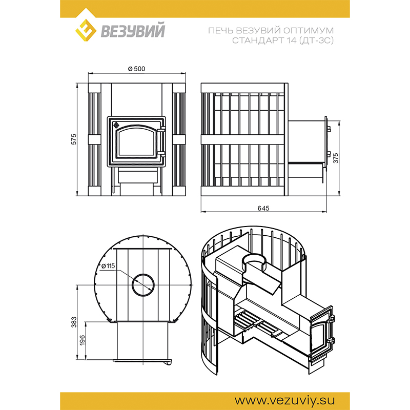 - Диаметр дымохода (мм) Ø 115