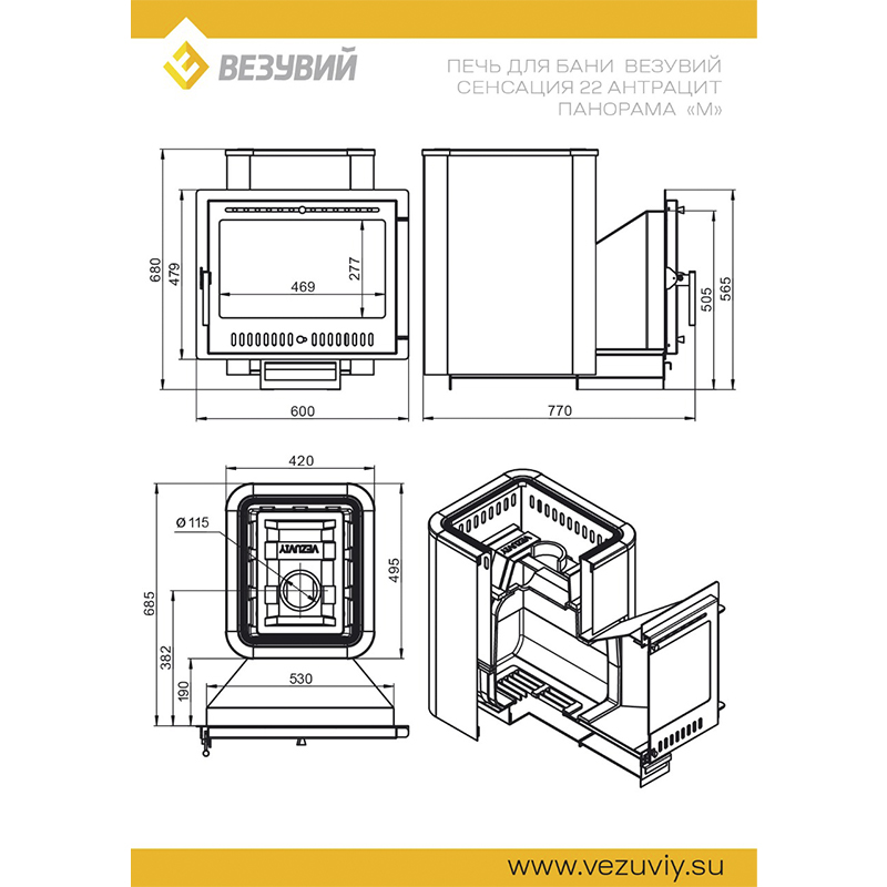 - Диаметр дымохода (мм) Ø 115