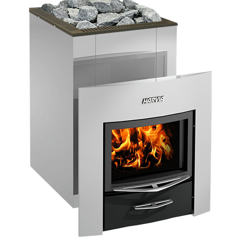 Дизайн этой печи отличается прямыми строгими линиями. Лаконичный внешний вид каменки придает ей элегантность и подчеркивает безупречность изделия. Корпус Harvia 22 Duo выполнен из нержавеющей стали и готов к интенсивной эксплуатации. Каменка устанавливается в парилке и растапливается из предбанника с помощью специального топочного тоннеля. Оригинальная дверца топки представляет собой большой стеклянный экран в обрамлении стильной рамы из нержавеющей стали. Большая площадь остекления позволяет наслаждаться ласковым теплом огня в комнате отдыха.