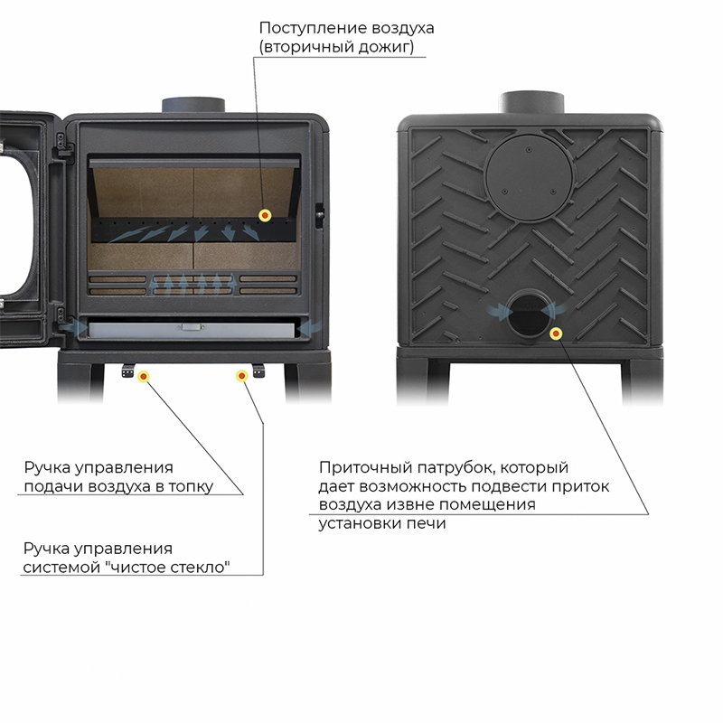 - Диаметр дымохода Ø150 мм