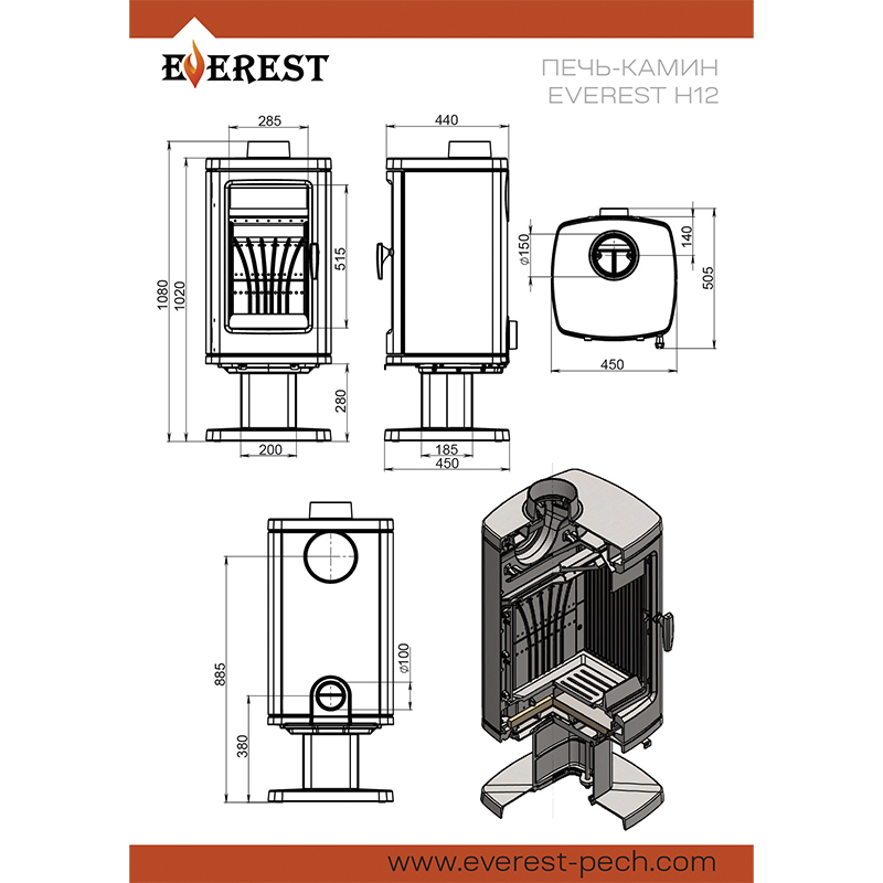 Печь-камин EVEREST Н12