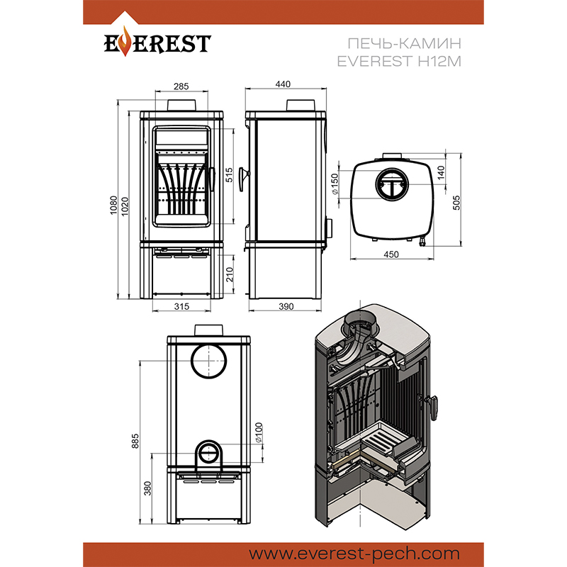Печь-камин EVEREST Н12М