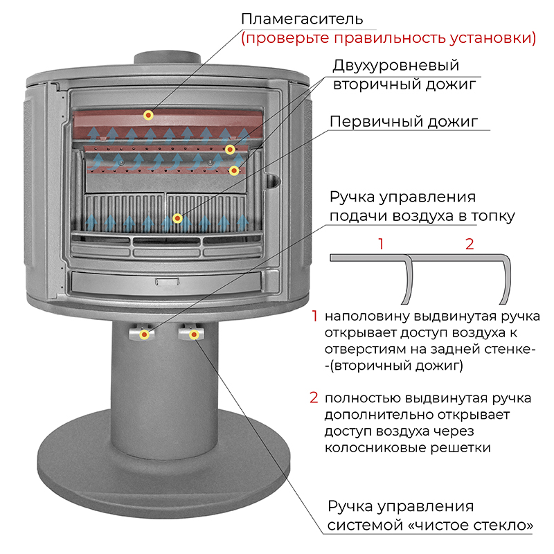- Диаметр дымохода Ø 150 мм