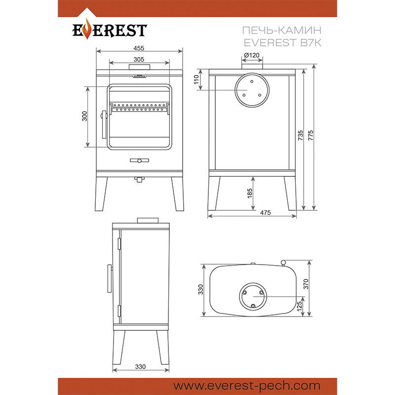 - Диаметр дымохода Ø120 мм