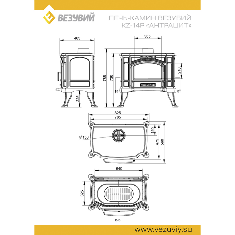 Печь-камин Везувий КЗ-14РС "Антрацит"