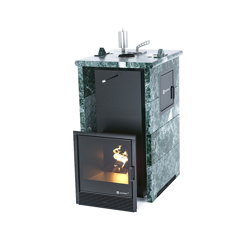 Главной особенностью печи «Сочи М2» является возможность работы в двух режимах. Печь можно топить дровами или установить газовую горелку и использовать как газовую печь. Горелка в комплект не входит, приобретается отдельно. Данная печь может быть выполнена под установку навесного бака. Если вам нужна эта опция, укажите в комментариях в корзине, что вам необходимо установить крепление для бака. Отдельно необходимо выбрать бак: https://tvoy-usadba.ru/catalog/product/teploobmennik-navesnoy-4-5l/. Сочи М2 - банная печь предназначенная для использования в семейной бане с объемом парной не более 22 м3. Закрытая каменка и встроенный парогенератор гарантирует большое количество легкого пара, огонь, пылающий за панорамным стеклом подарит атмосферу тепла и уюта в вашей бане, Боковой вход в каменку (М2) позволяет провести более быструю ревизию камней, подавать воду на камни, не используя парогенератор. Кожух из природного камня, создаст приятную атмосферу в парной, излучая мягкое тепло.